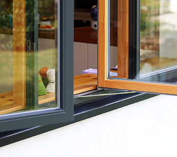 - Deutsche Terrassentür standardmäßig aus beständigem Lärchenholz gefertigt